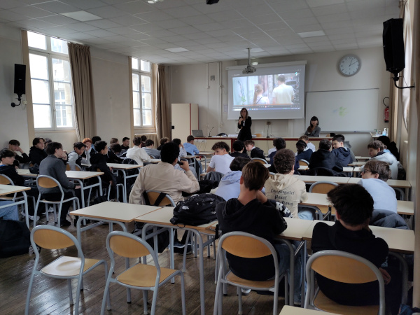 Les groupes de 3 lycéennes rencontraient 1 étudiante toutes les 10 min ce qui leur ont permis d’échanger avec 4 étudiantes pendant l’heure. Une belle écoute et complicité se sont installées et les lycéennes ont montré beaucoup d’intérêt aux témoignages exposés par les étudiantes.